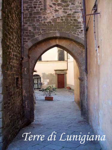 La Torre di Castelnuovo si alza sulla sponda sinistra del fiume Magra, alla fine del Ponte Cesare Battisti, accanto all’oratorio di Nostra Donna. Conosciuta anche come Torre di Busticca o di Bustiè, si tratta di una grande torre quadrata che insieme al castello del Piagnaro, la cortina del Cacciaguerra (costruiti prima, per questo di "Castelnuovo") e la torre dei Seratti, completava la difesa della città in epoca medievale.