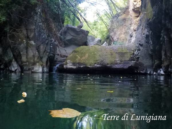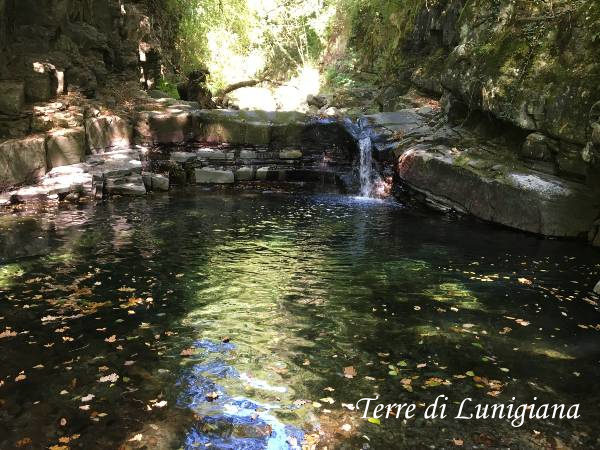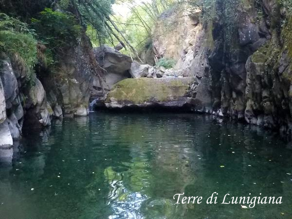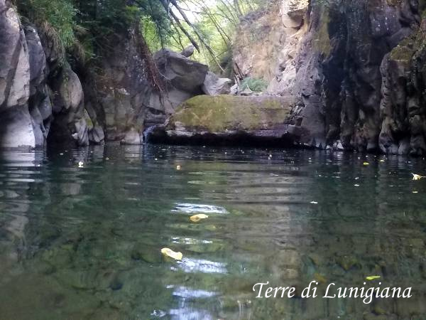 Una stupenda pozza d'acqua non più raggiungibile se non risalendo a piedi il torrente, di trova sotto il ponte di Cavallana.